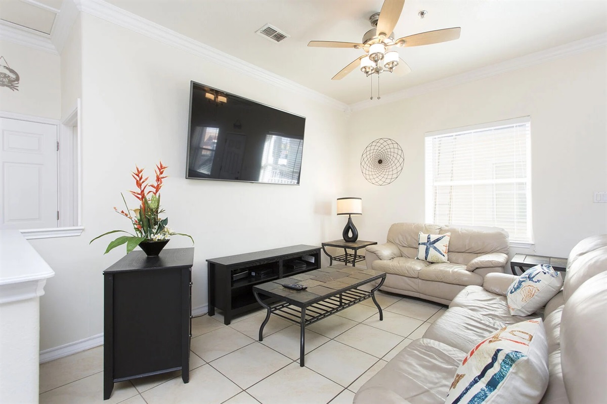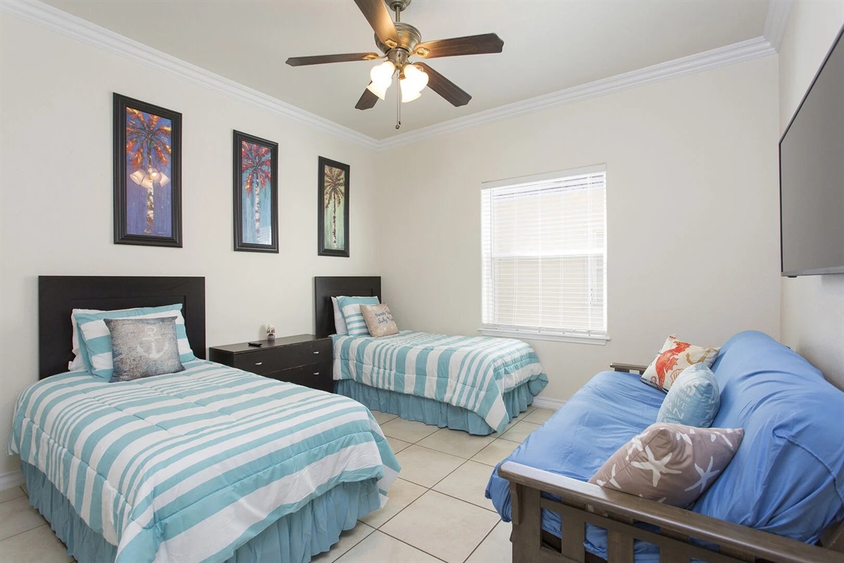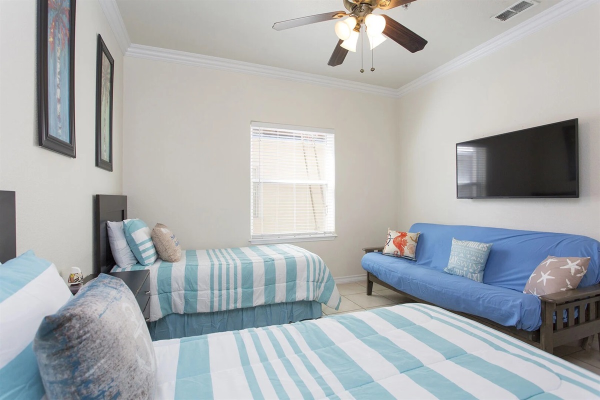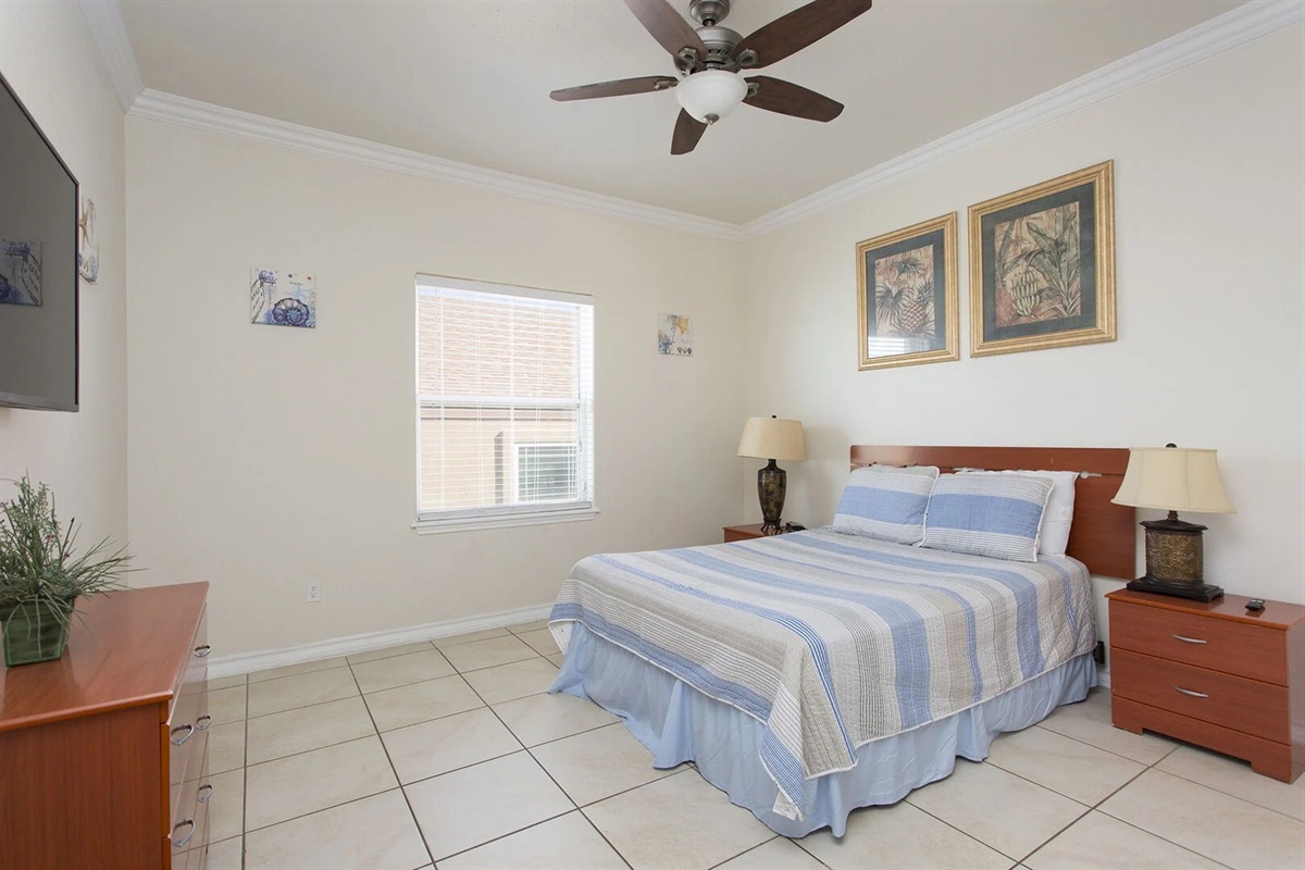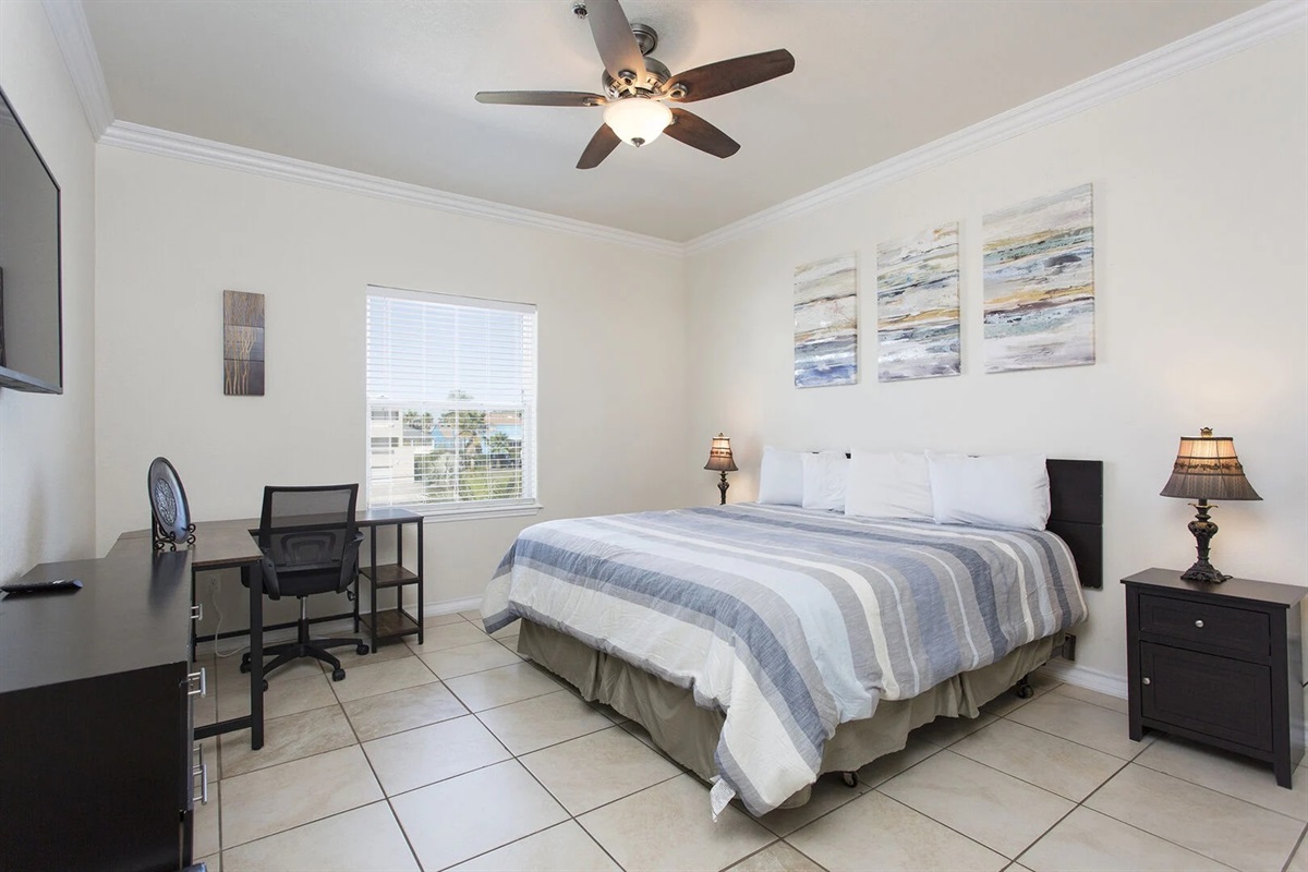 As many as eight guests will sleep soundly in this three-bedroom, two-bathroom condo. The master bedroom offers a king-size bed and a twin size bed as well, a flatscreen TV, ceiling fan, and a modern bathroom with a ceramic tile shower. The two guest rooms have queen size beds and one of them has twin size bed, flat screen TVs and ceiling fans. The condo also features fast wireless internet.