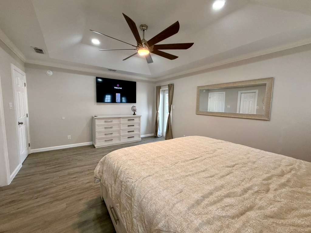 Yes, all units have at least parking for two vehicles. Please do not block other units parking spaces! Some streets in SPI allow parking on the street and some don’t. Please ask! Your vehicle may be towed away at owners expense if parked illegally. Park at your own risk.